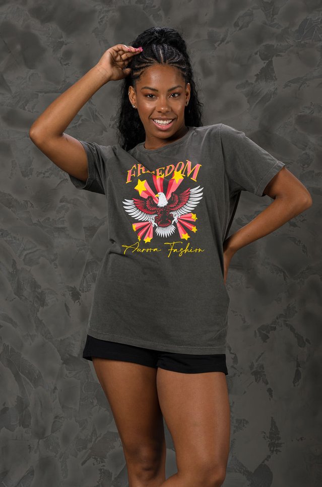 T-shirt modelagem oversized confecionada em malha 100% algodão, estonada em lavanderia qua da a peça maciez, com processo de pre-encolhimento para não encolher quando você lavar. A peça possui decote redondo com ribana, manga curta, estampa frontal em silk screen que não racha (não é transfer/sublimação), caimento reto e solto, para maior conforto.